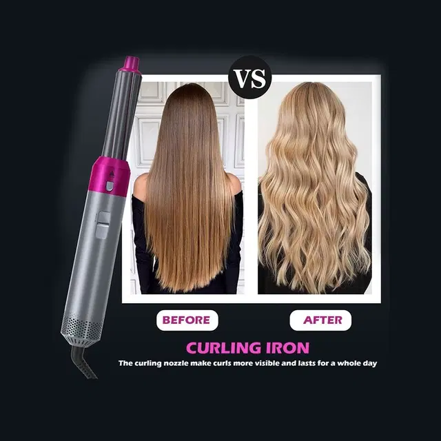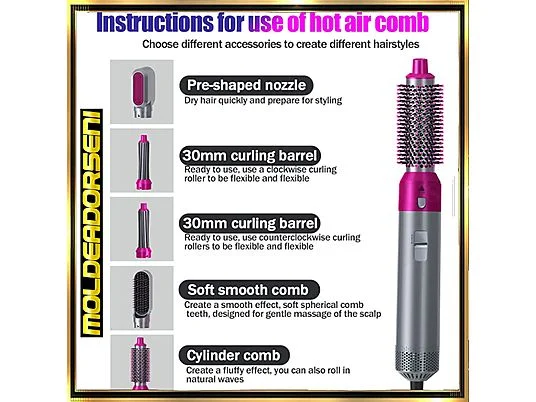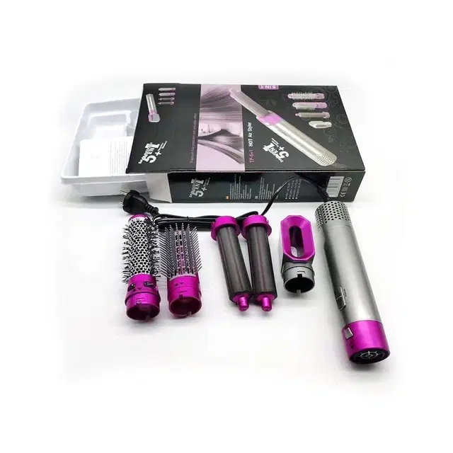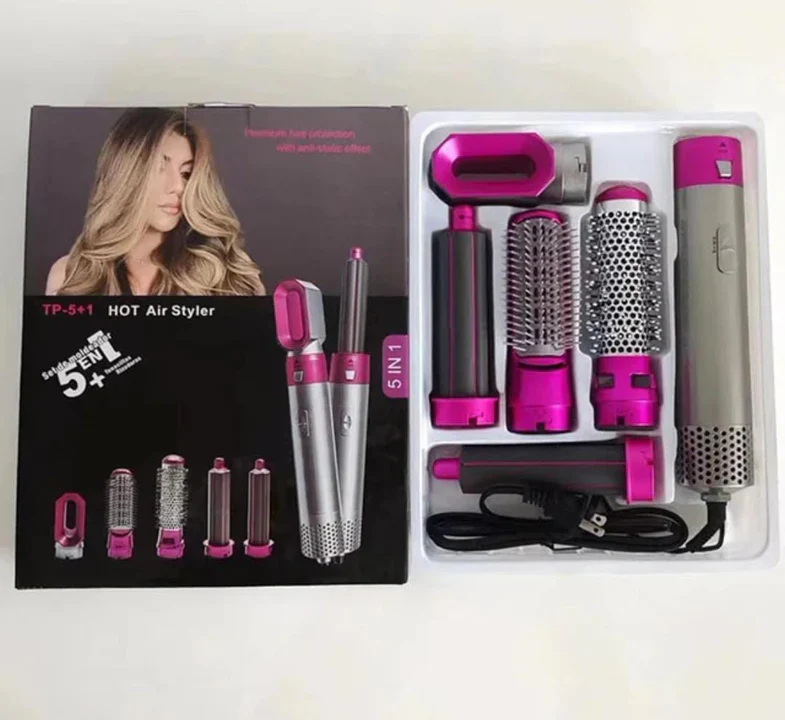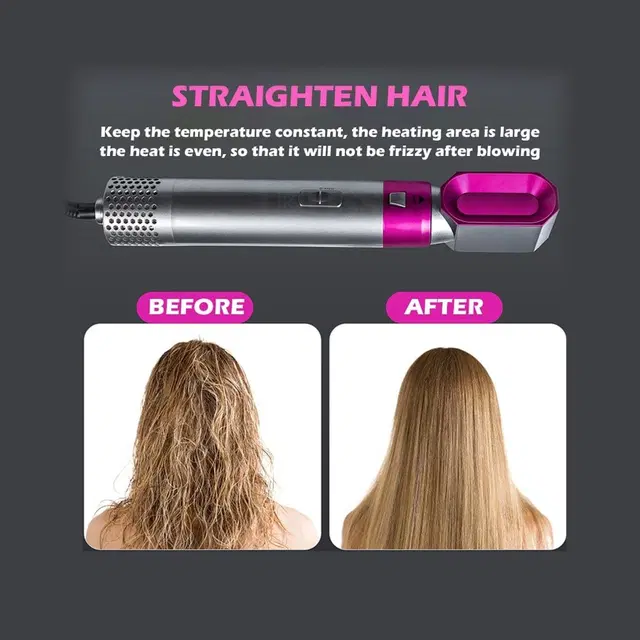 El secador de cepillo de aire caliente 5 en 1 para mujeres es una herramienta de peinado versátil que incluye cinco accesorios intercambiables. Con tecnología de iones negativos y revestimiento cerámico, evita el encrespamiento y permite lograr múltiples estilos de cabello de manera fácil y rápida, adaptándose a diferentes longitudes y tipos de cabello.