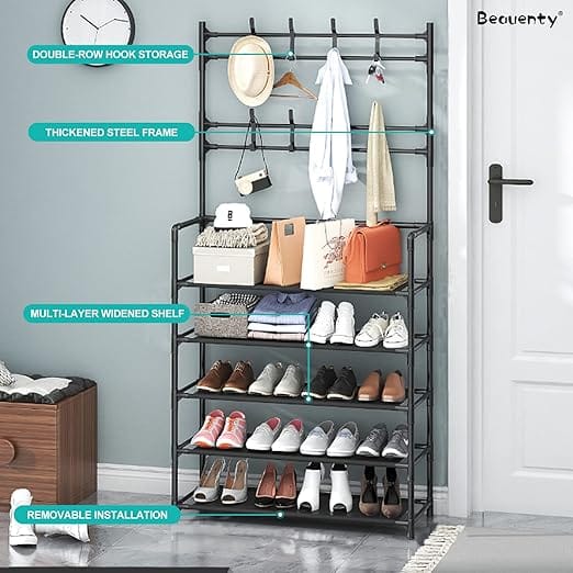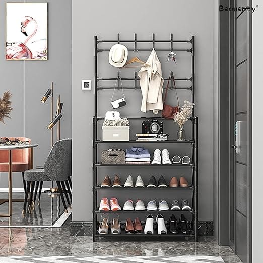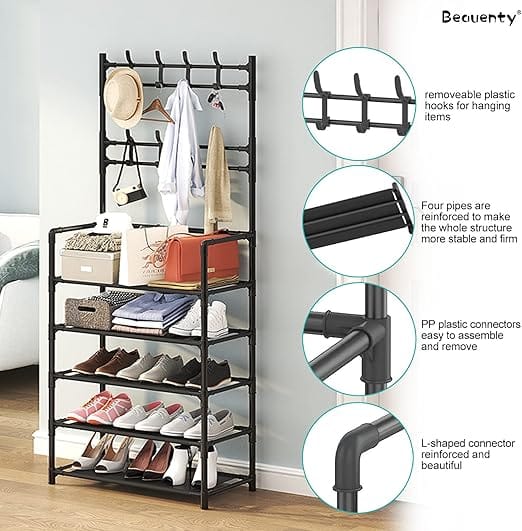 El Organizador Perchero Zapatero Multifuncional es la solución perfecta para mantener tu hogar ordenado y estilizado. Con un diseño innovador 3 en 1, este organizador ahorra espacio y ofrece funcionalidad para colgar ropa, guardar zapatos y almacenar accesorios, todo en un solo mueble elegante.